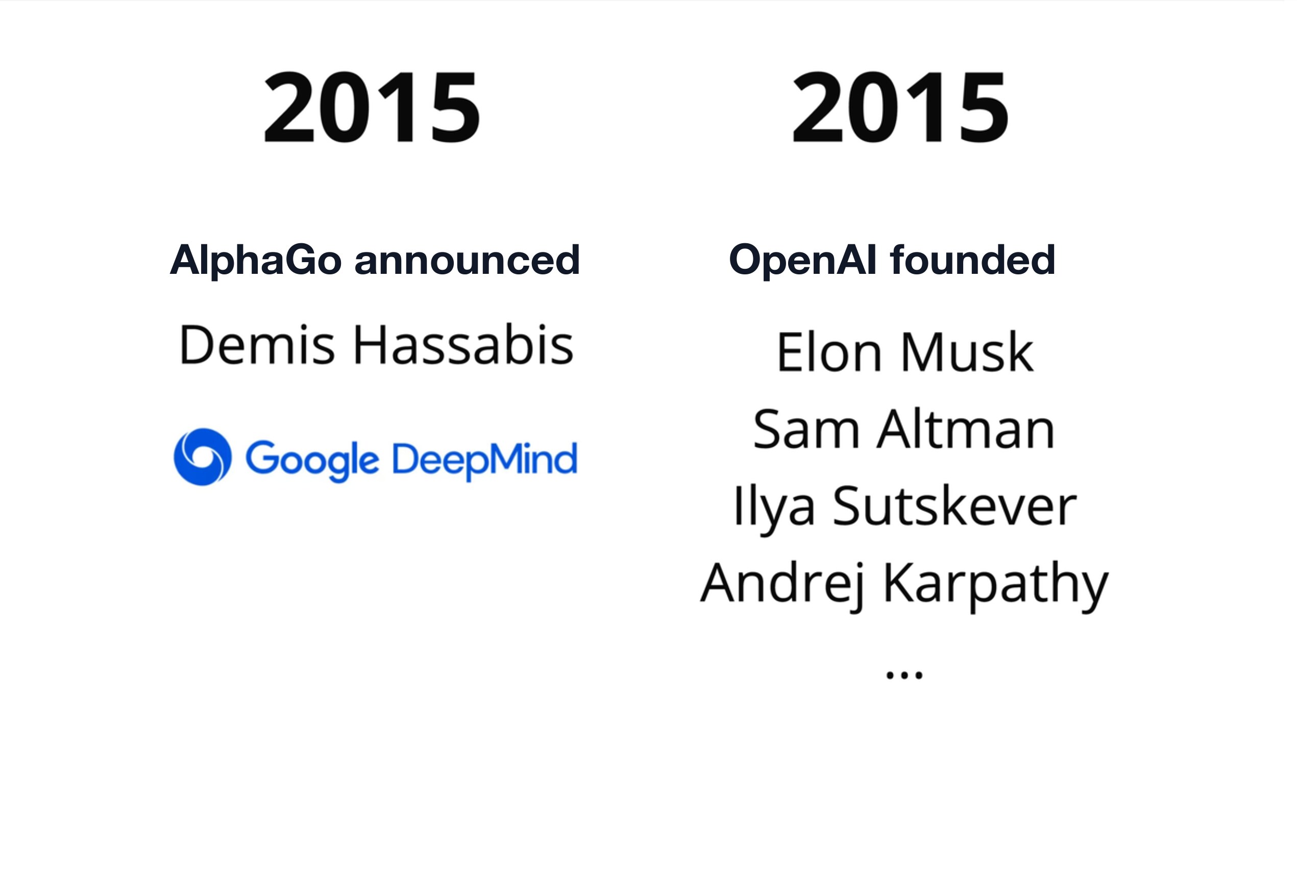 | 2015 | AlphaGo and OpenAI | Deep learning becomes strategic |