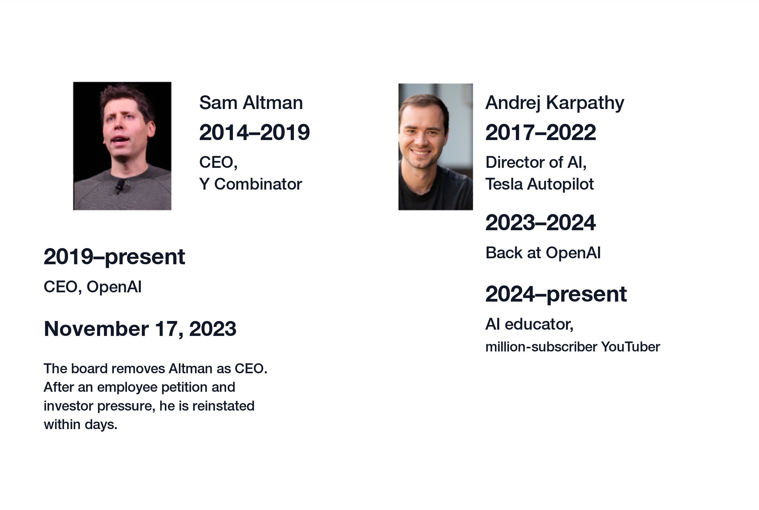 Sam Altman led Y Combinator from 2014 to 2019. He is not known primarily as a deep learning researcher. His strength is organizational: recruiting people, allocating capital, and turning research direction into product direction.