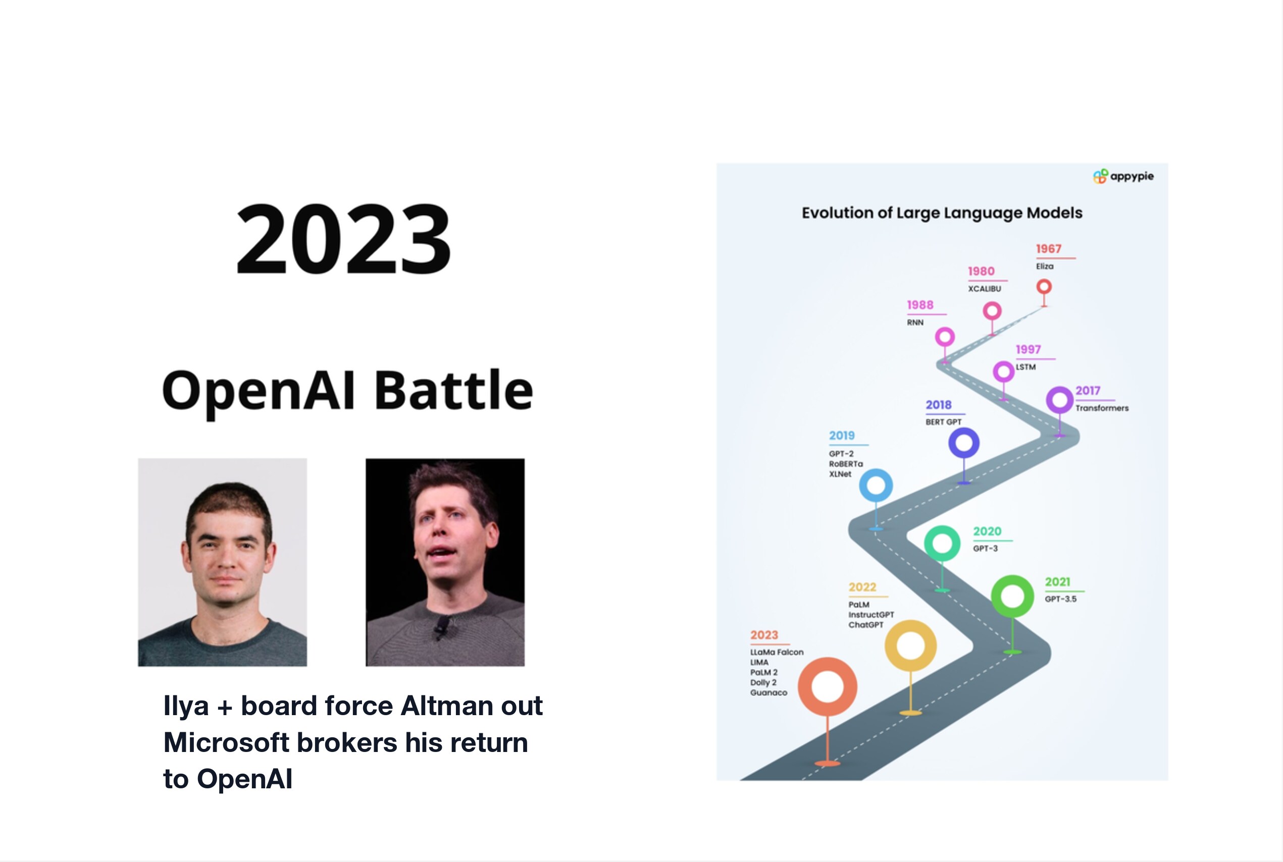 | 2023 | GPT-4 and governance crisis | Capability and institutions both matter |