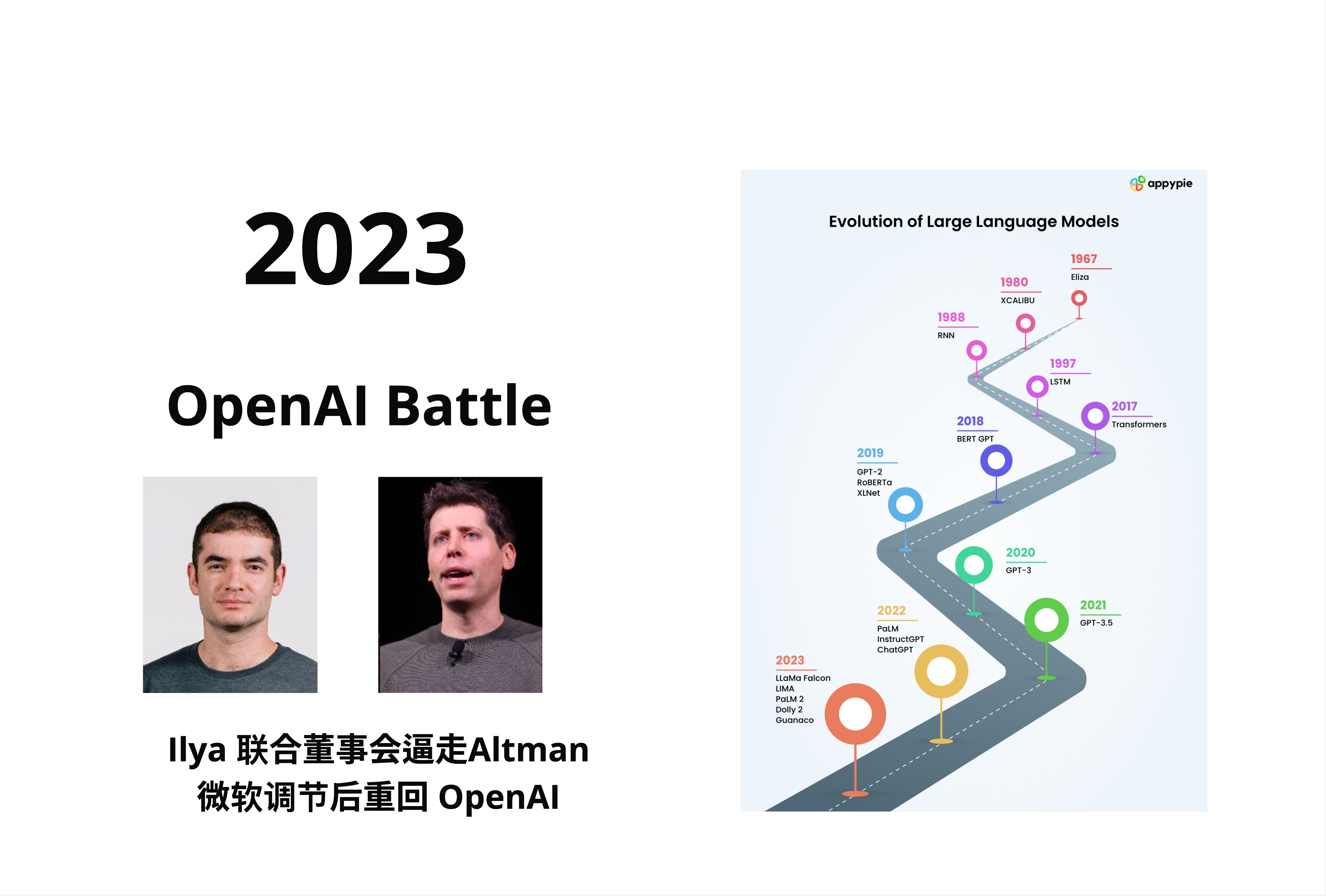 | 2023 | GPT-4 + OpenAI 宫斗 | 多模态 + 治理问题 |