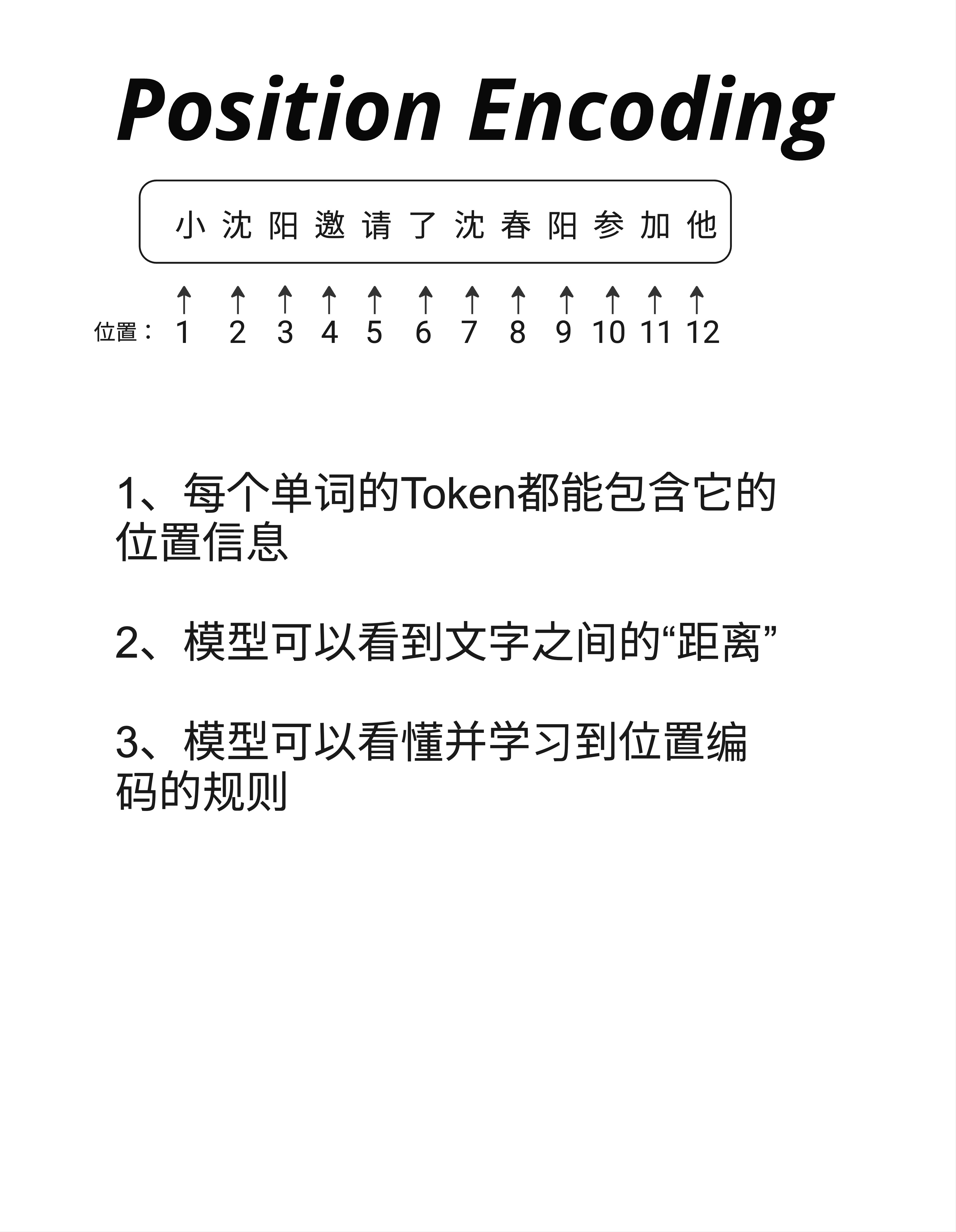 - 模型知道这是第 1 个字、第 2 个字、还是第 100 个字