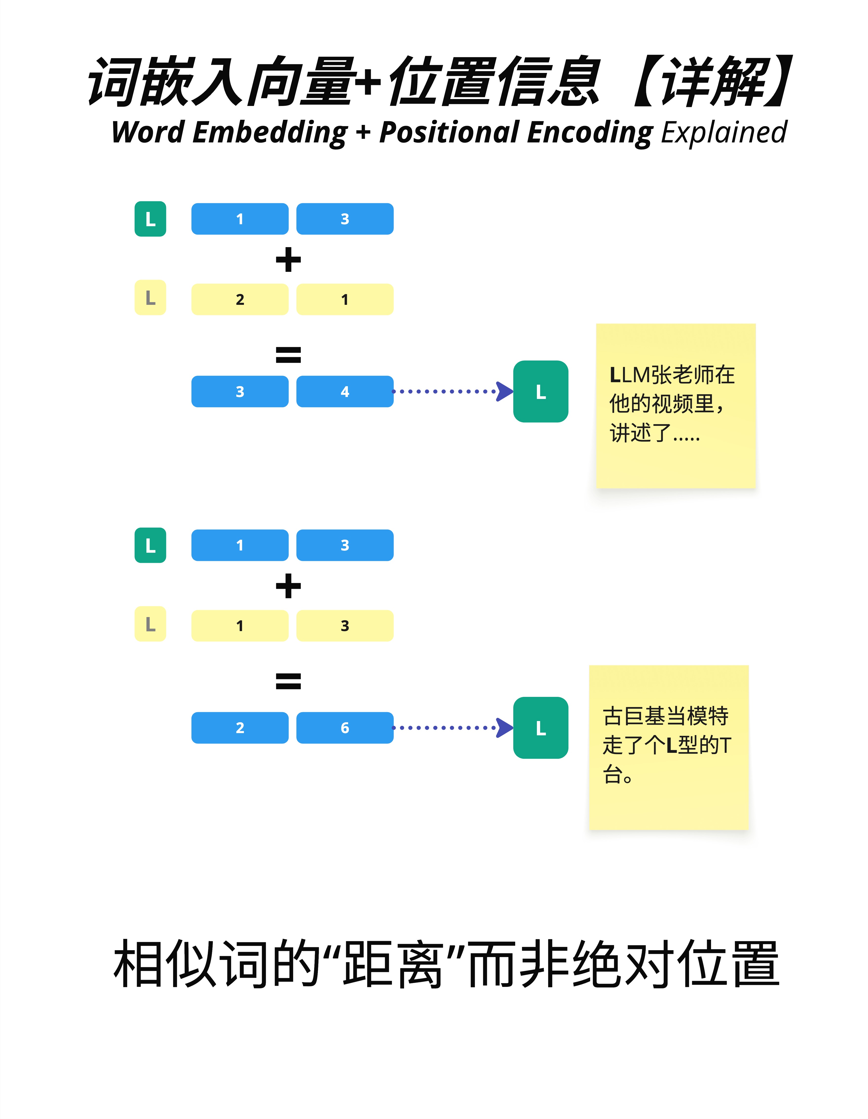 关键观察:两个 L 虽然 Embedding 相同,但加上不同的位置编码后,结果不同了!