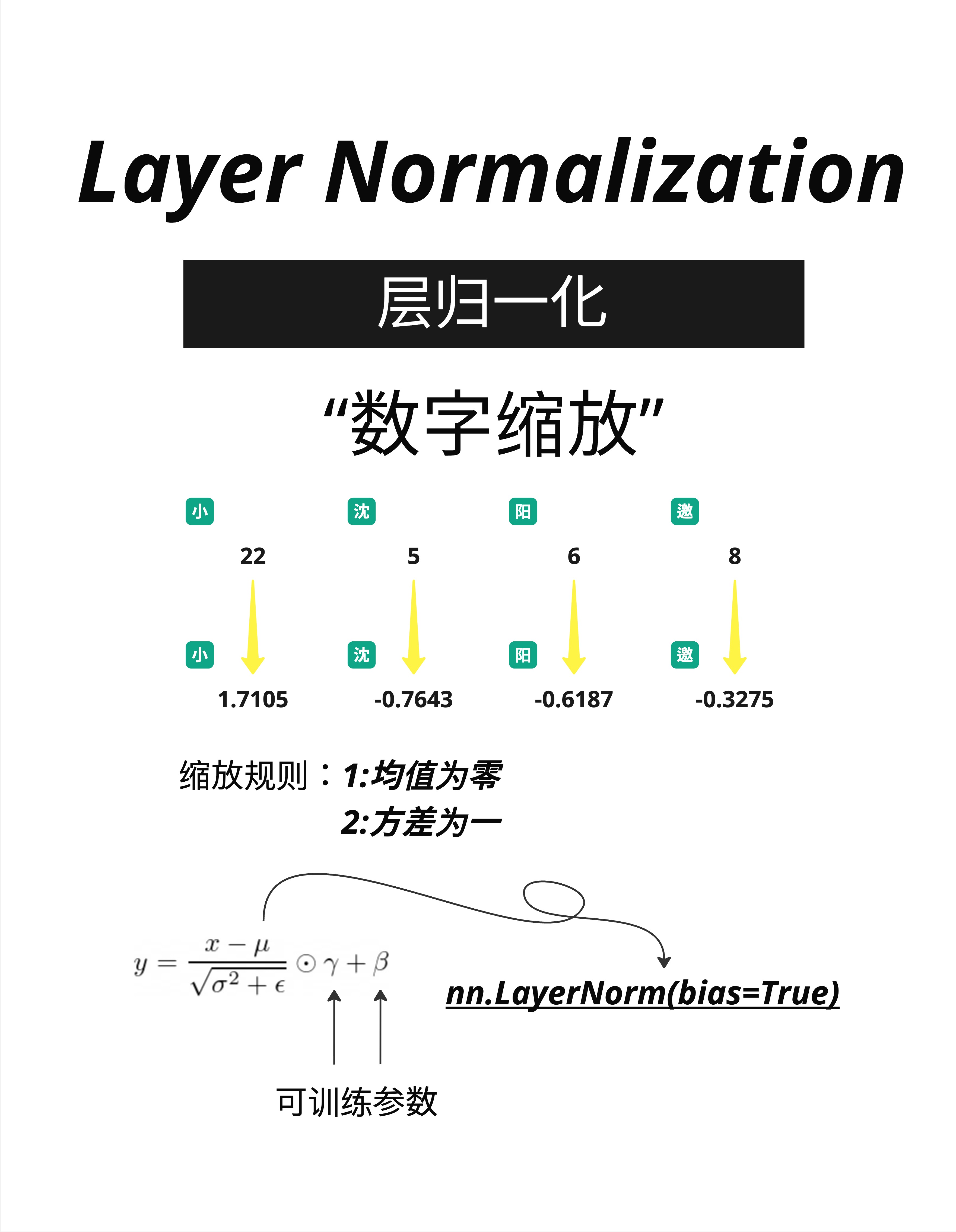 Layer Normalization(层归一化) 的作用就是把数字"缩放"到一个标准范围。