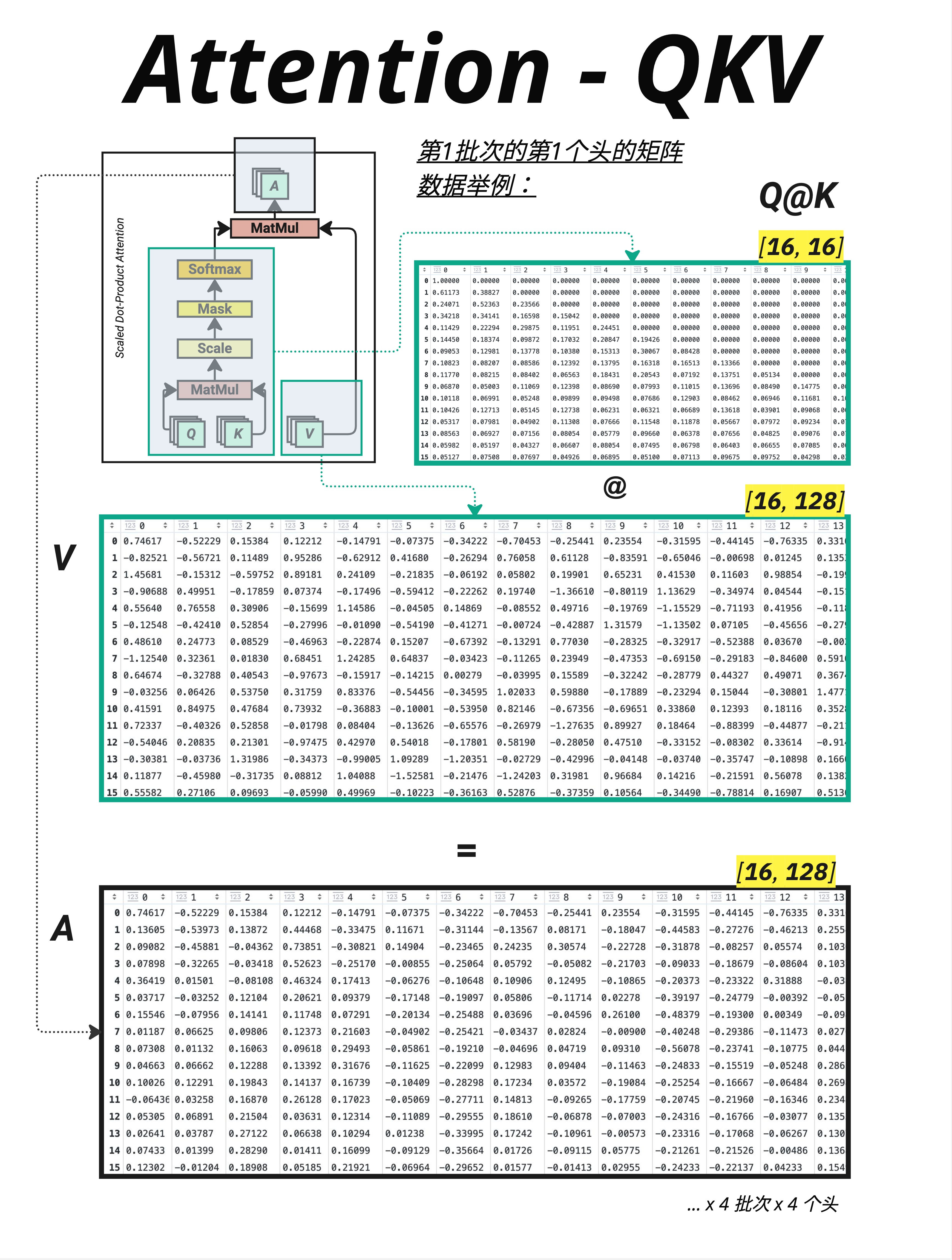 - Q @ K 结果是一个 [16, 16] 的注意力矩阵