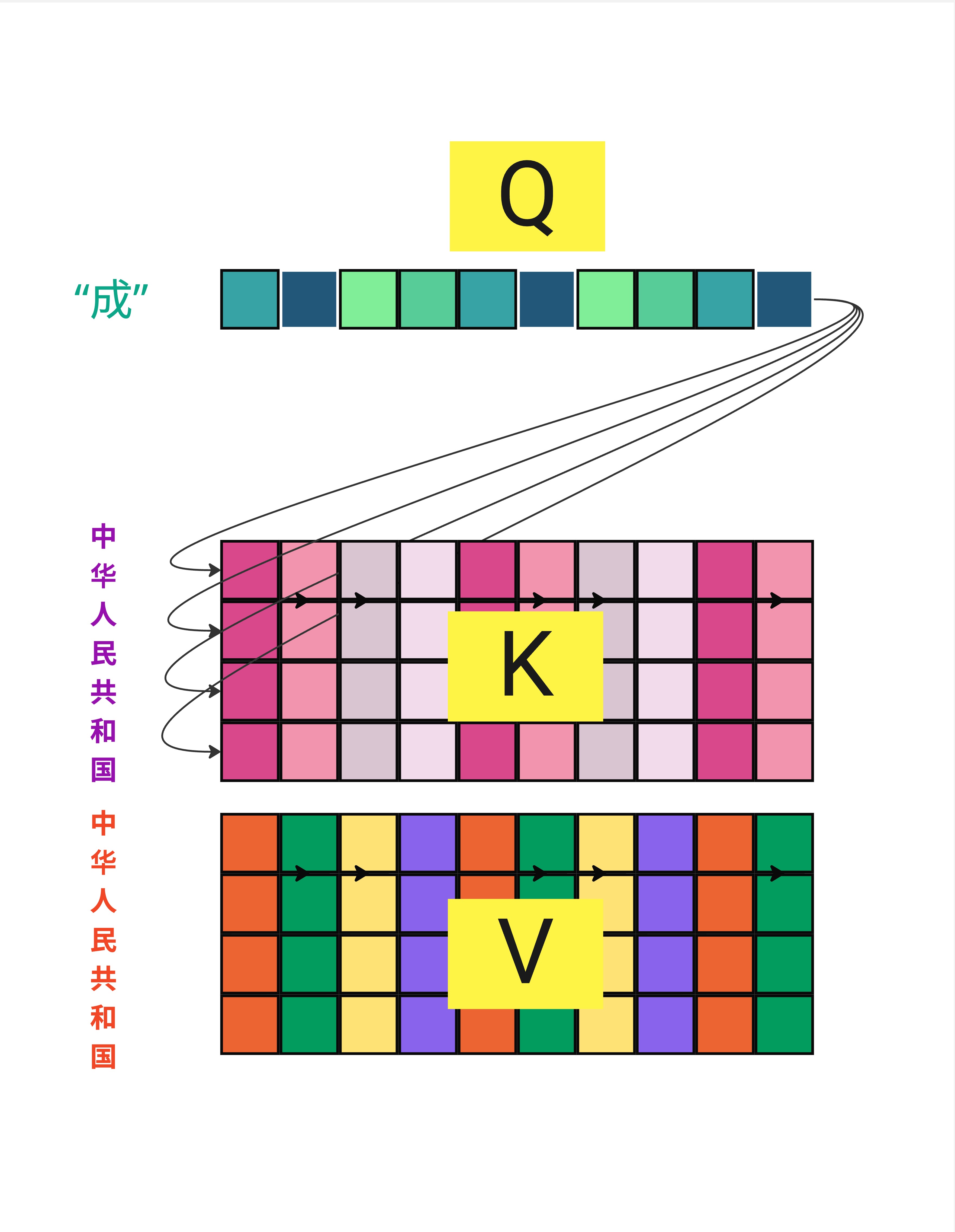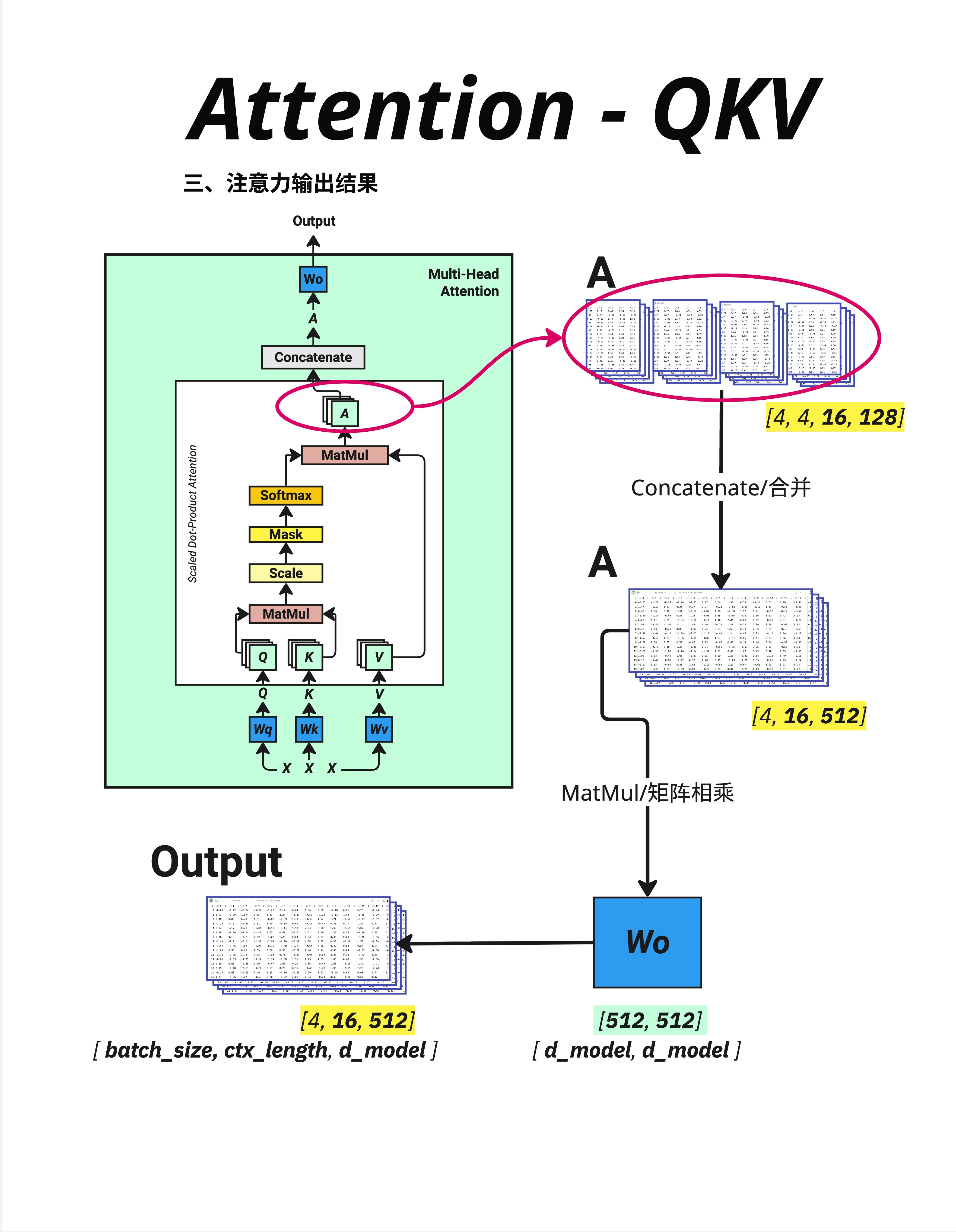 现在我们有了 4 组 (Q, K, V),可以进行 4 次独立的 Attention 计算。