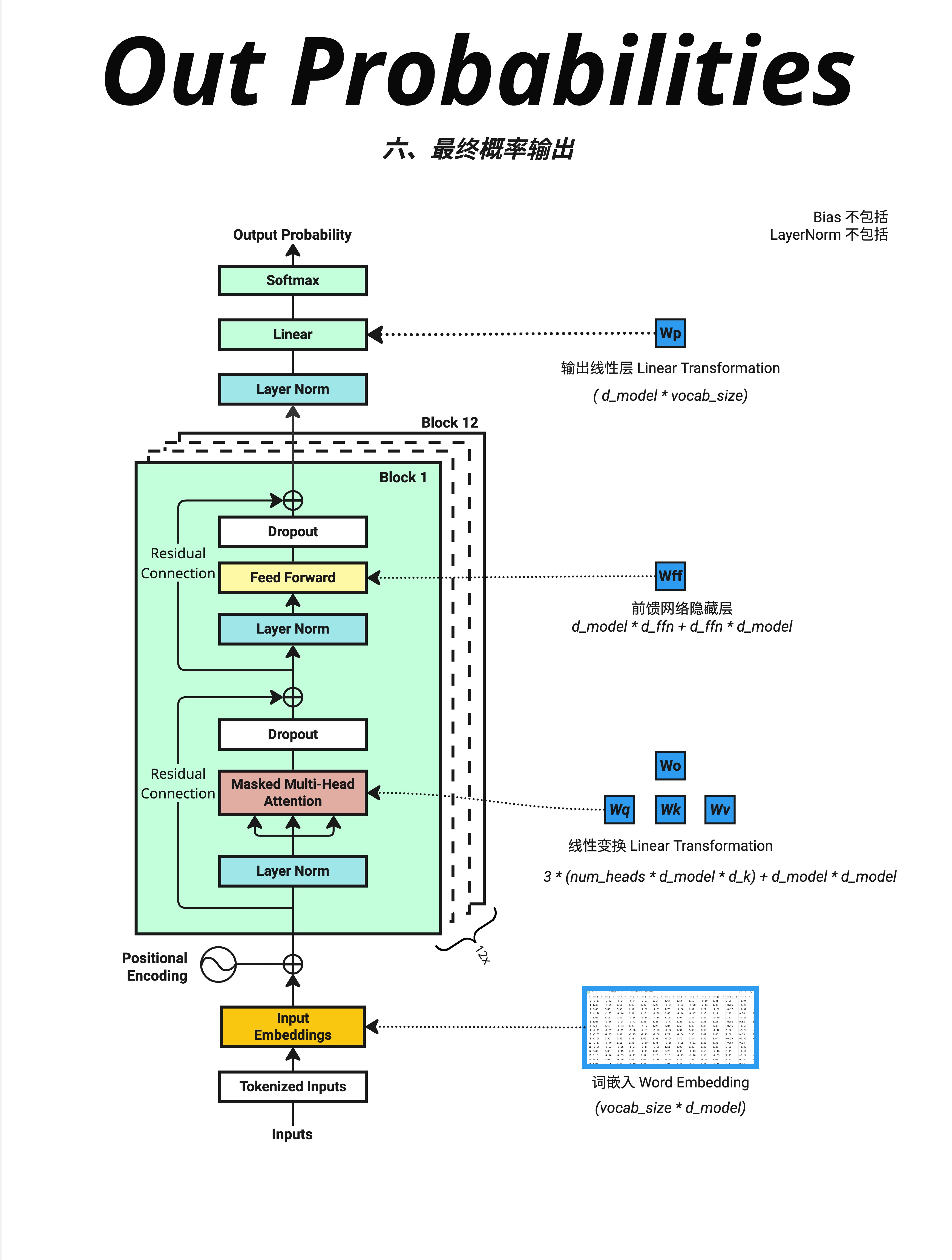 以 GPT-2 Small 为例(d_model=768, n_layers=12, vocab_size=50257):