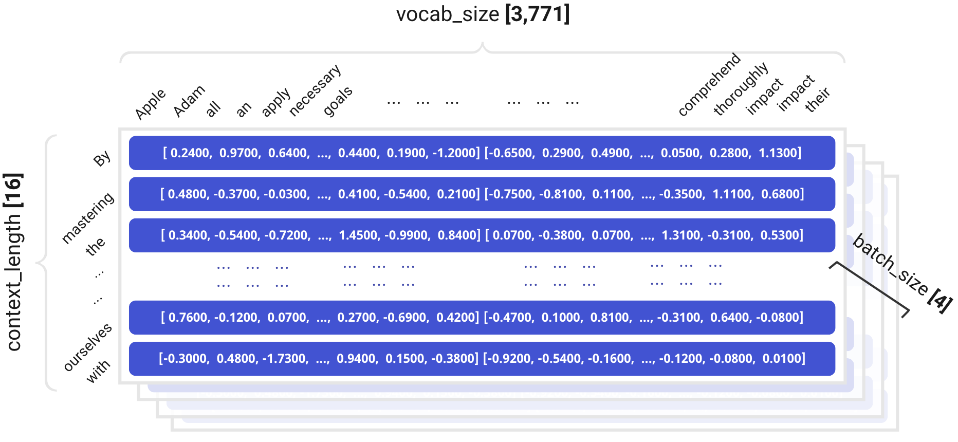 输出 [batch, seq, vocab_size] = [4, 16, 100256]